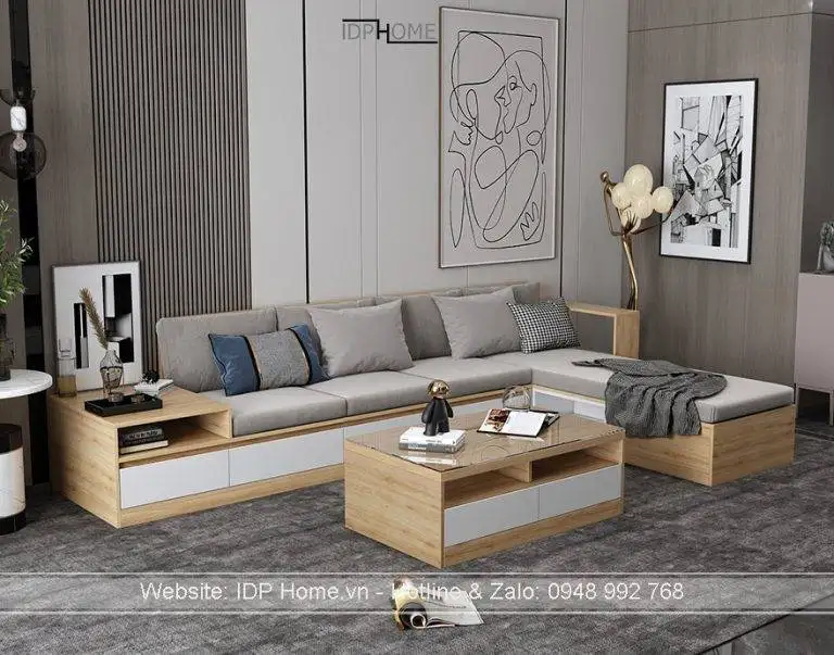 Phía dưới gầm ghế sofa là một hệ thống 4 ngăn kéo nhỏ và một hộc hở, giúp gia chủ cất giữ những đồ vật, vật dụng nhỏ như: hộp cafe, cốc, chén, … mang đến sự ngăn nắp, gọn gàng không làm mất công tìm khiếm khi cần.