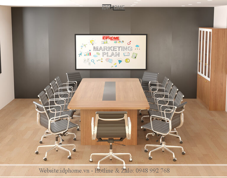 Tại IDP Home, chúng tôi sở hữu xưởng sản xuất trực tiếp nên hoàn toàn có thể hỗ trợ khách hàng thay đổi màu sắc vân gỗ hoặc điều chỉnh kích thước để phù hợp tuyệt đối với diện tích phòng họp thực tế của doanh nghiệp.