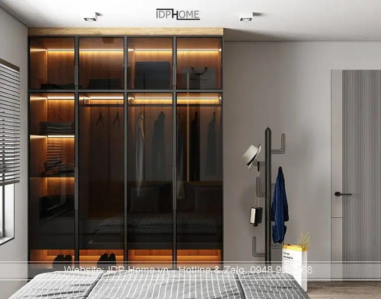 Tủ quần áo cánh kính kết hợp hệ đèn LED âm tủ không chỉ tăng sự sang trọng mà còn giúp dễ dàng quan sát và lựa chọn trang phục. Đây là xu hướng thiết kế phòng ngủ nhỏ đẹp được nhiều khách hàng trẻ yêu thích vì mang đến cảm giác cao cấp, đẳng cấp như trong các khách sạn 5 sao.