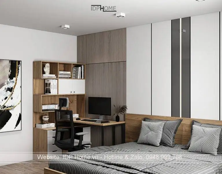 Trong nhịp sống đô thị ngày nay, việc tối ưu hóa không gian sống đang trở thành xu hướng không thể thiếu, đặc biệt là với các căn hộ chung cư có diện tích hạn chế. Mẫu thiết kế phòng ngủ nhỏ đẹp PN6806 từ IDP Home là lựa chọn lý tưởng cho những ai đang tìm kiếm sự hài hòa giữa công năng và thẩm mỹ, đồng thời tạo ra không gian nghỉ ngơi lý tưởng, tiện nghi và hiện đại.